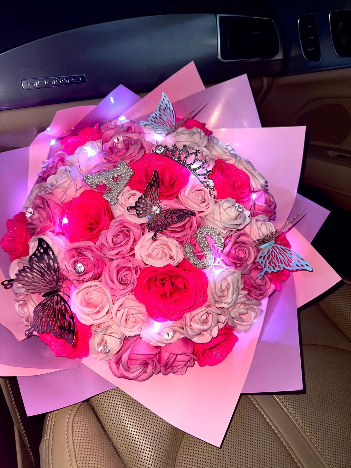 Transformă un simplu buchet într-un cadou de neuitat! Alege trandafirii preferați și personalizează-i cu accesorii elegante – panglici, luminițe și multe alte detalii care fac diferența. Creează un aranjament unic, exact pe gustul persoanei dragi!